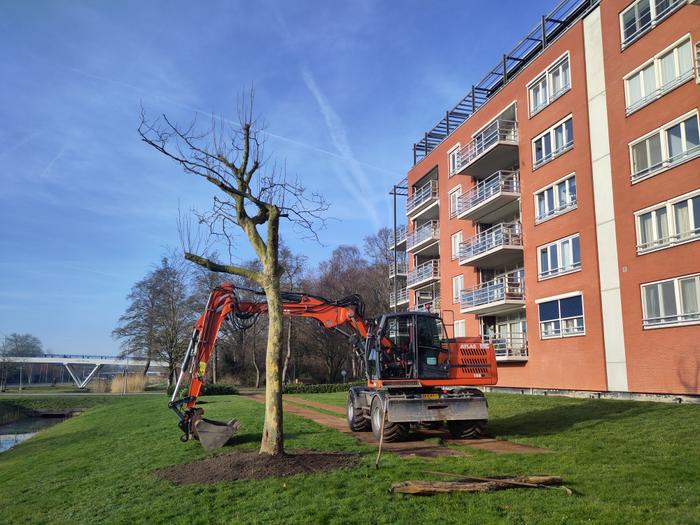 De bomen waren afkomstig van een bedrijfspand die gesloopt is vorig jaar en hebben nu een nieuw leven gekregen op een nieuwe plek.