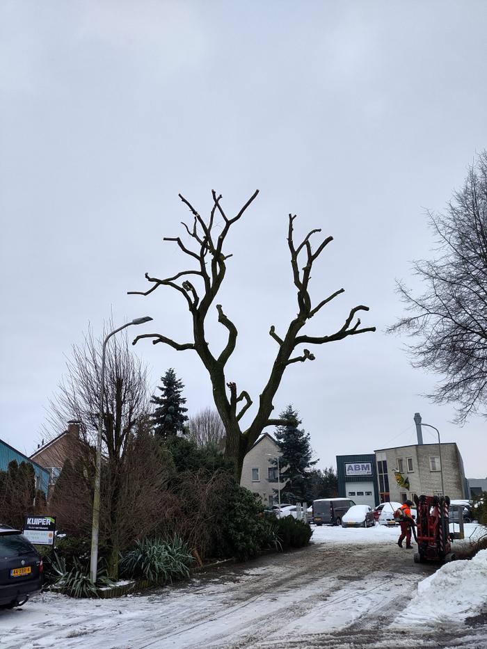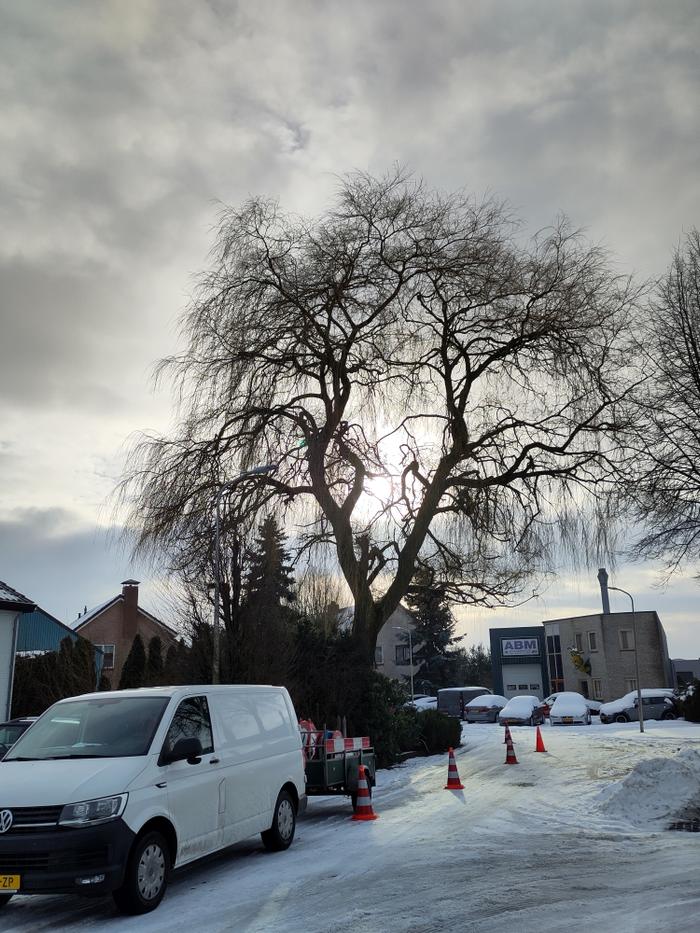 Deze oude treurwilg hebben we flink moeten snoeien aangezien er de afgelopen 2 jaar forse takken uit begonnen te breken. Dit komt vaker voor bij treurwilgen van deze leeftijd aangezien er aanzienelijk veel gewicht aan de uiteinden van de takken komt en het hout steeds brozer word naarmate de boom ouder begint te worden.