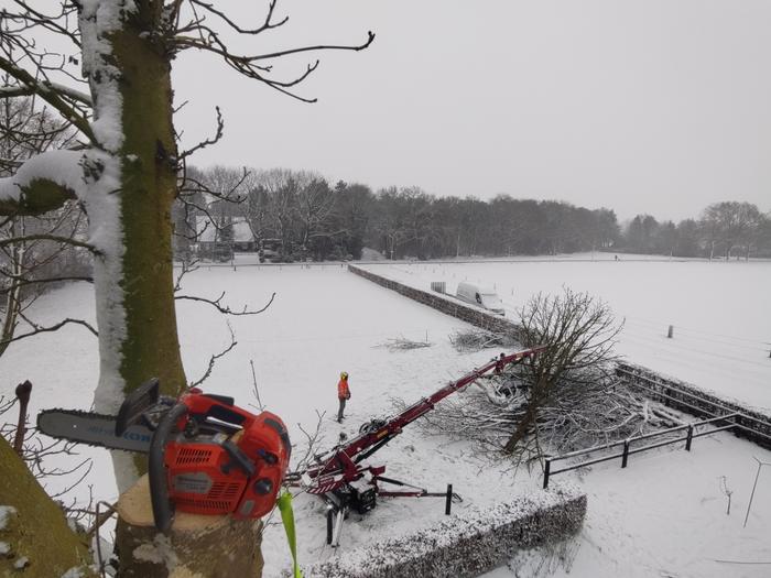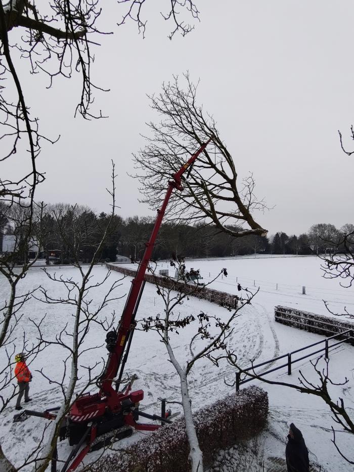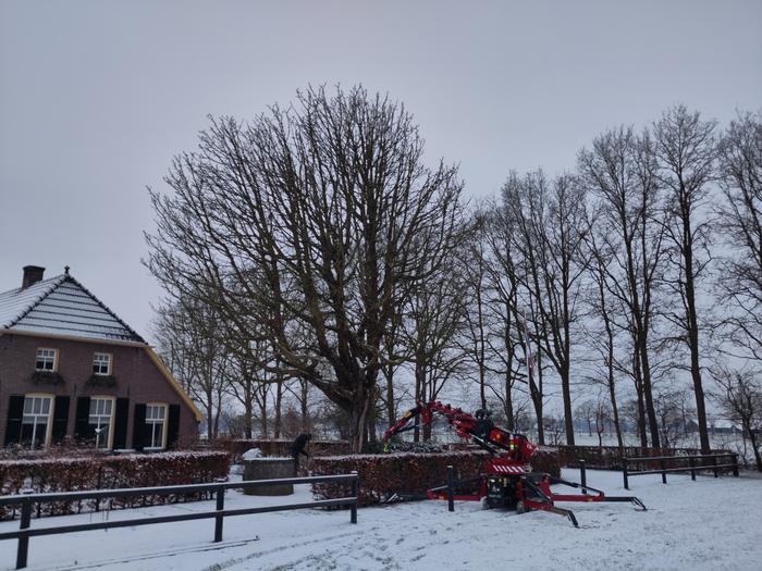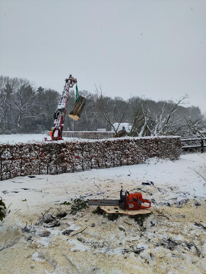 2026 Gaat van start, en samen met de sneeuw levert dit mooie beelden op! lees hier hoe wij een door bloedingziekte aangetaste kastanjeboom hebben weg gehaald in Lemelerveld.